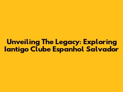 Unveiling The Legacy: Exploring Iantigo Clube Espanhol Salvador