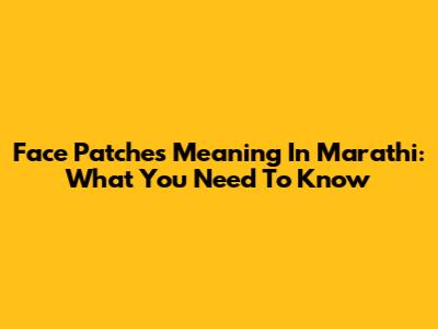 Face Patches Meaning In Marathi: What You Need To Know